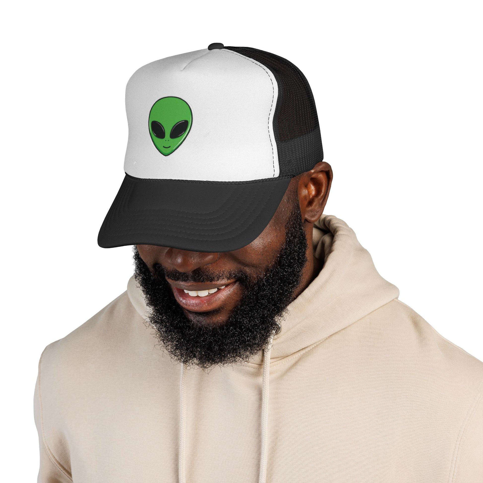 Green Alien Trucker Hat – Cute UFO Alien Face Mesh Cap