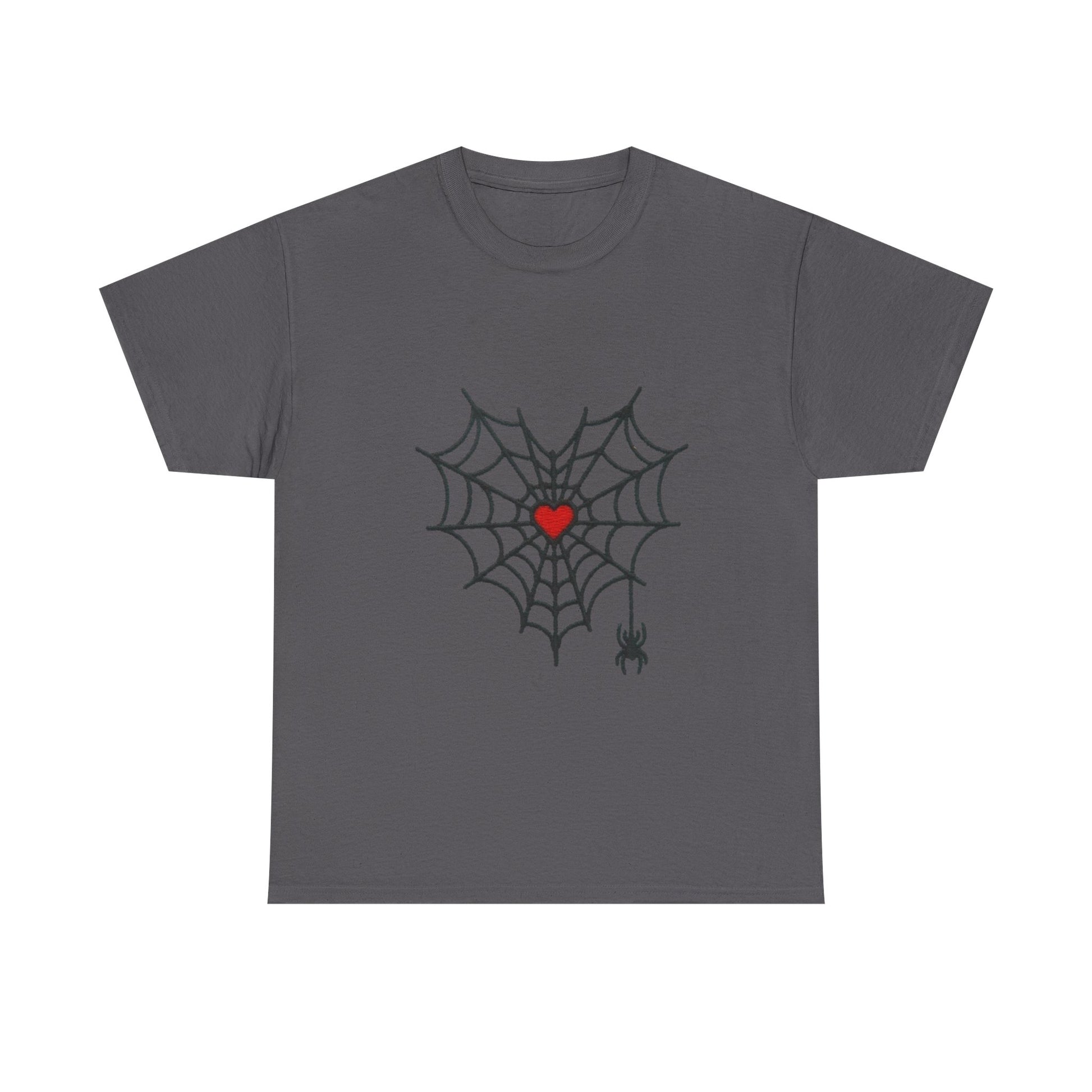 T-Shirt — Spider Web Heart Graphic Tee (Cute Halloween Love Design)